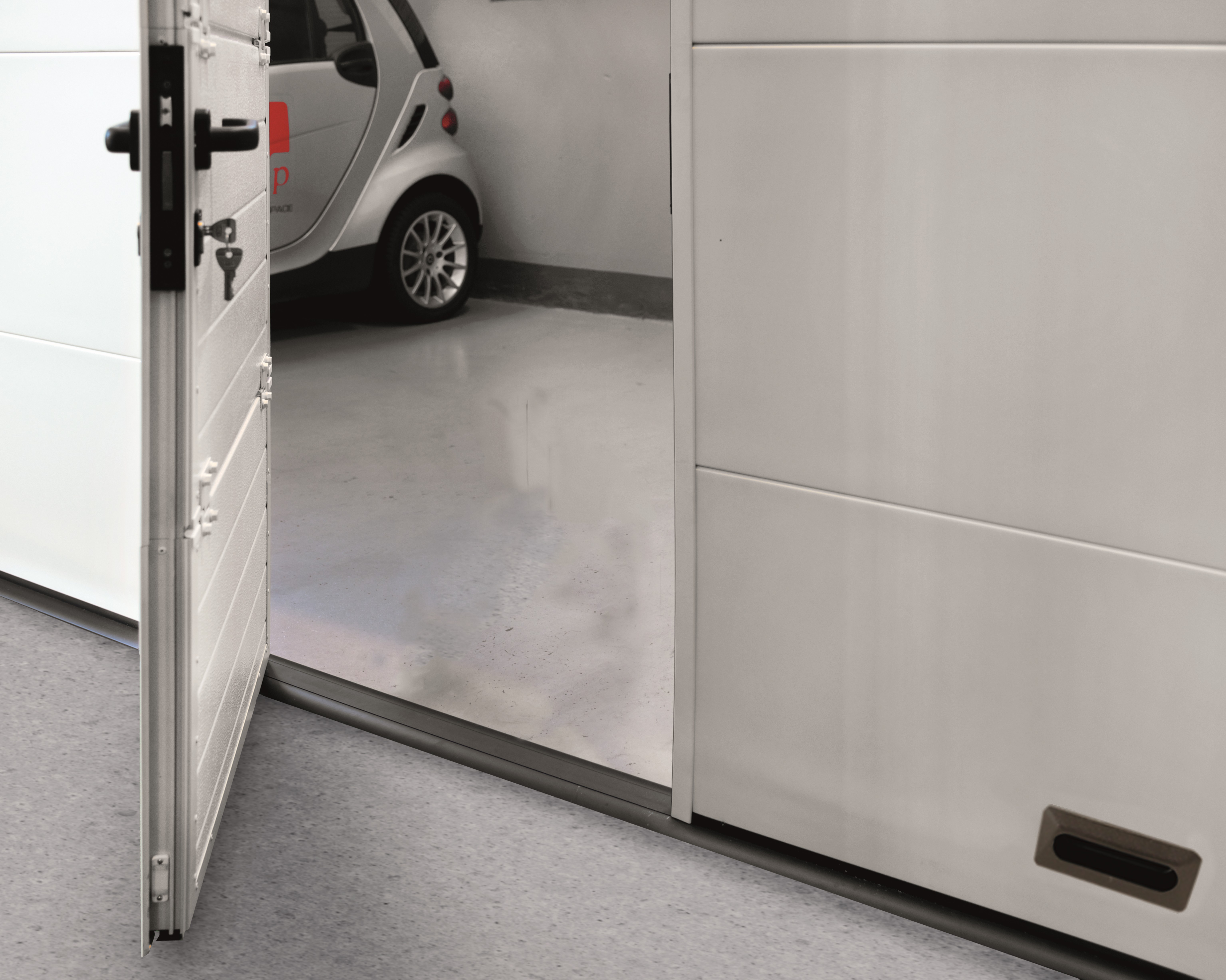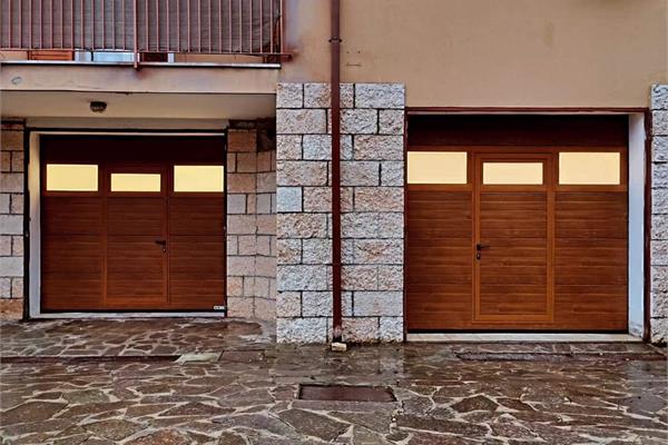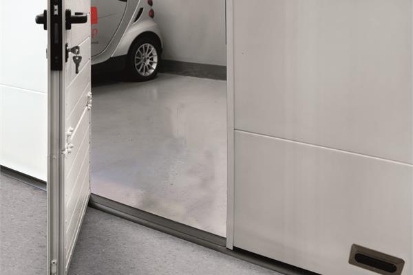 È possibile inserire la porta pedonale passo-uomo all’interno della porta sezionale, sia in posizione centrata che decentrata.