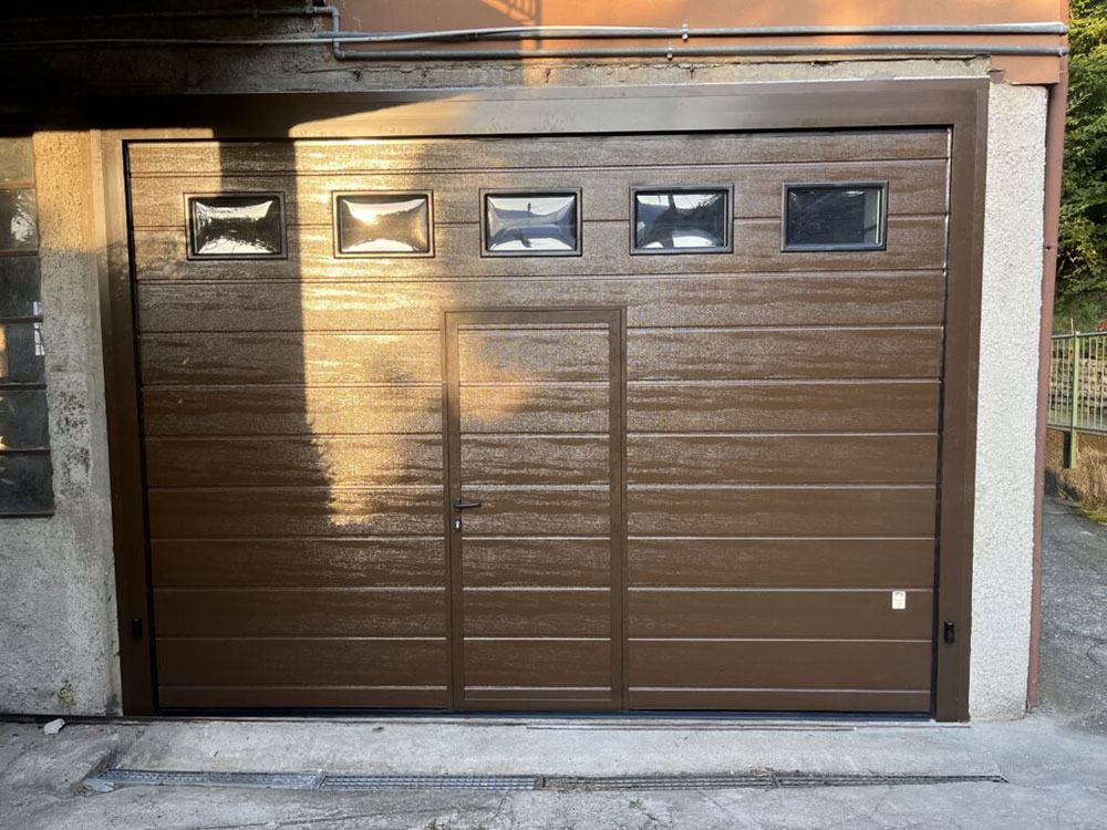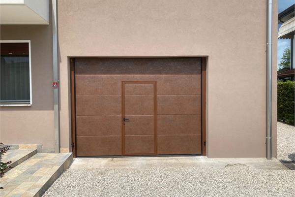 La porta inserita è disponibile nei colori RAL e nelle finiture simil legno e le misure disponibili sono 800 - 900 - 1200 mm in larghezza.