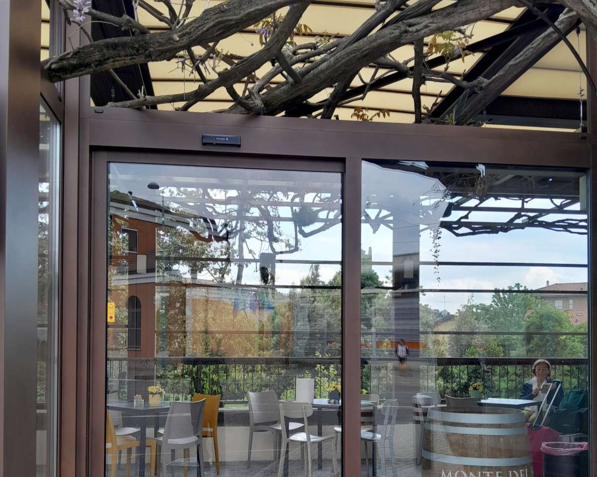 - Le porte automatiche con apertura laterale, sono costituite da un’anta mobile che scorre verso destra o verso sinistra, per adattarsi alle esigenze architettoniche di spazio.