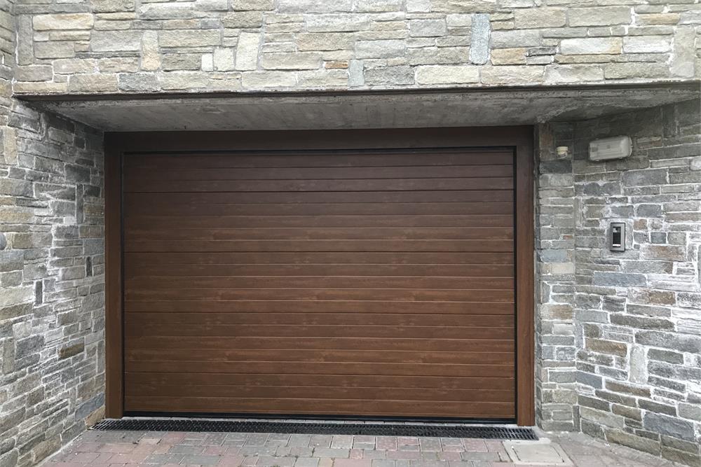 I pannelli coibentati in acciaio zincato a doghe orizzontali passo 100 mm, spessore 0,5 mm sono rivestiti con una speciale pellicola in materiale plastico che li rende idonei per la collocazione esterna, inalterabili nel tempo senza bisogno di manutenzione. Il fascino di questo modello è dovuto alla sobria signorilità dato dalla riproduzione fedele dell’effetto del legno su una superficie liscia.