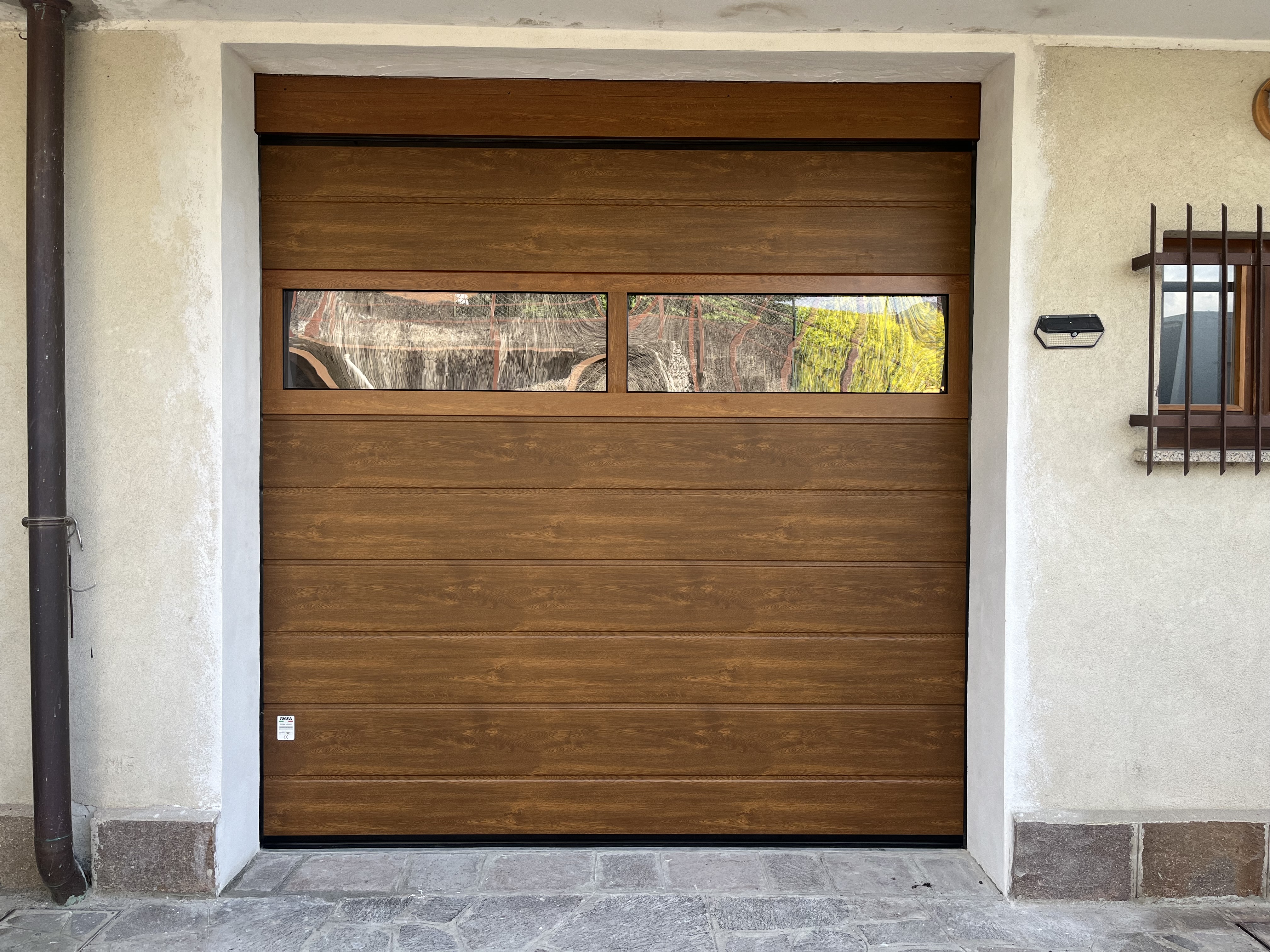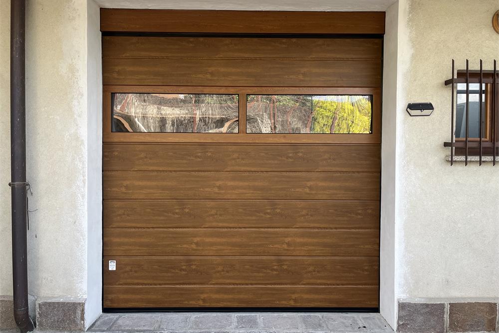 Caratteristica distintiva del modello è la finitura effetto legno liscia ad una doga centrale di uguale dimensione alla giuntura dei pannelli in acciaio zincato, spessore 0,5 mm, che garantisce un effetto estetico di totale naturalità.