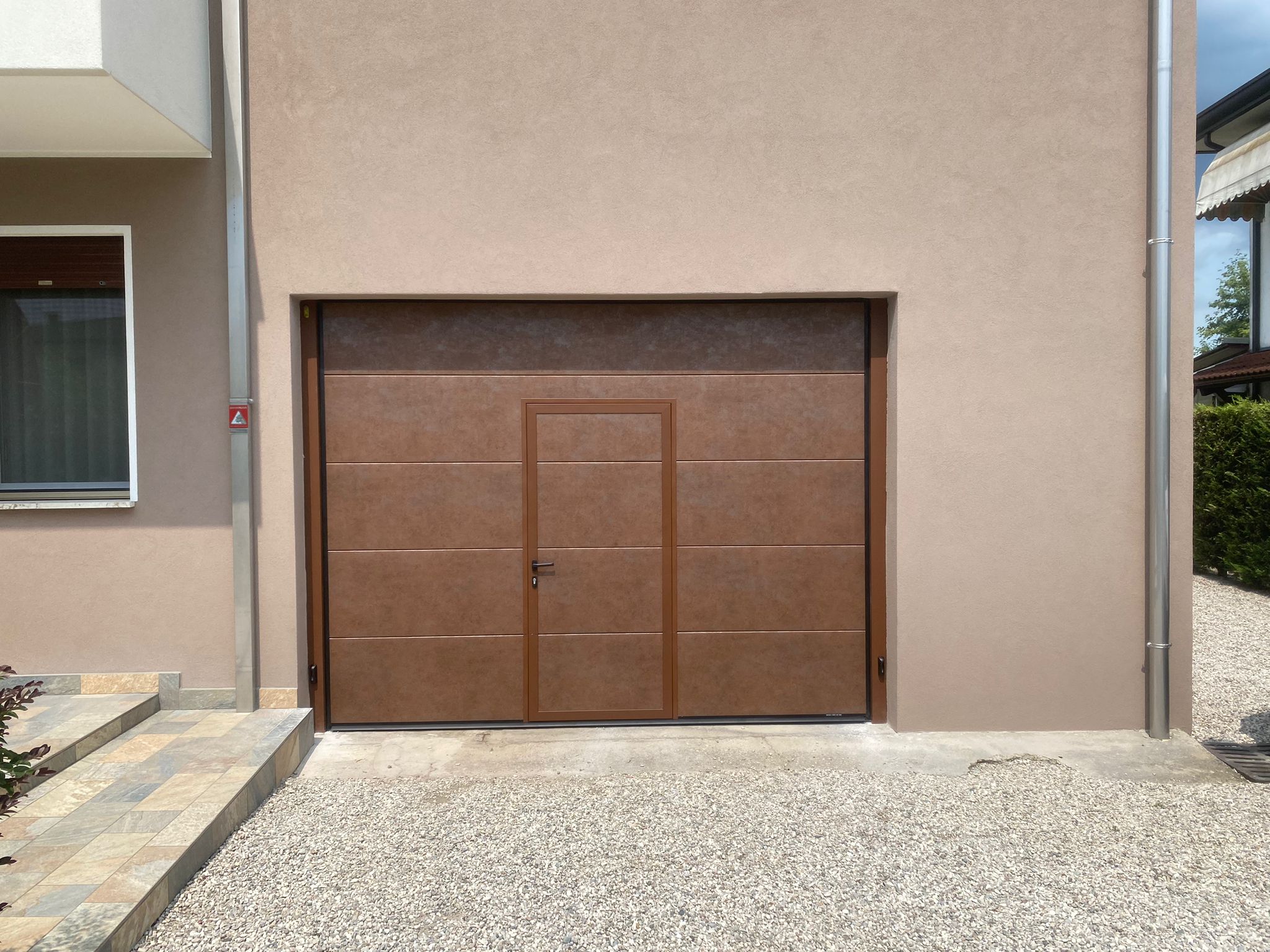 È possibile inserire la porta pedonale passo-uomo all’interno della porta sezionale, sia in posizione centrata che decentrata.