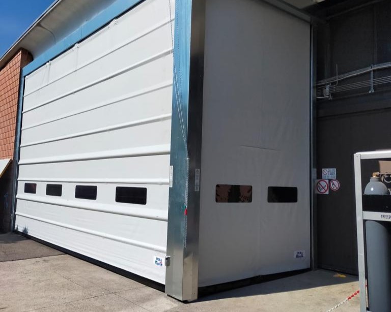 Porte molto veloci in fase di apertura e chiusura, sicure, eleganti, innovative per ambienti interni ed esterni, in grado di creare ottimo isolamento termico tra gli ambienti o tra l’esterno e l’interno.