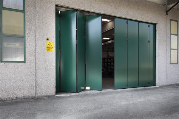 I PORTONI A LIBRO sono porte che si aprono lateralmente ripiegandosi su se stesse. Possono essere ad unico o a doppio impacco, con sistema di apertura e chiusura motorizzato.