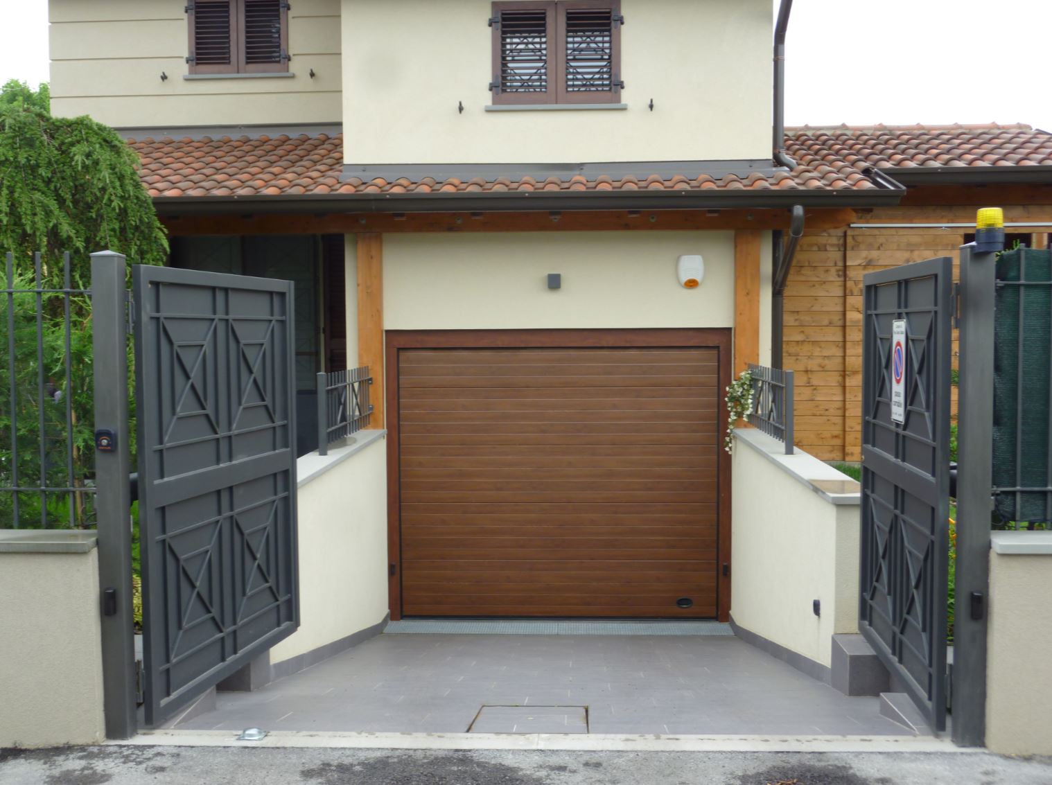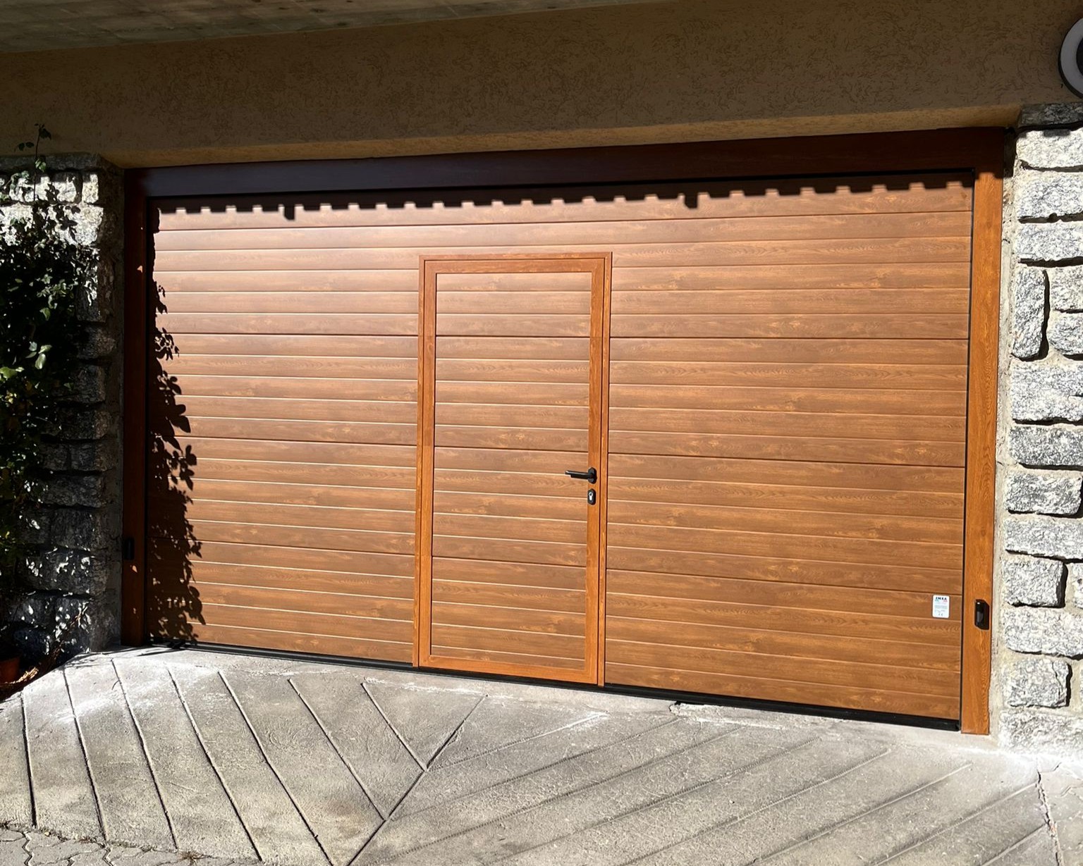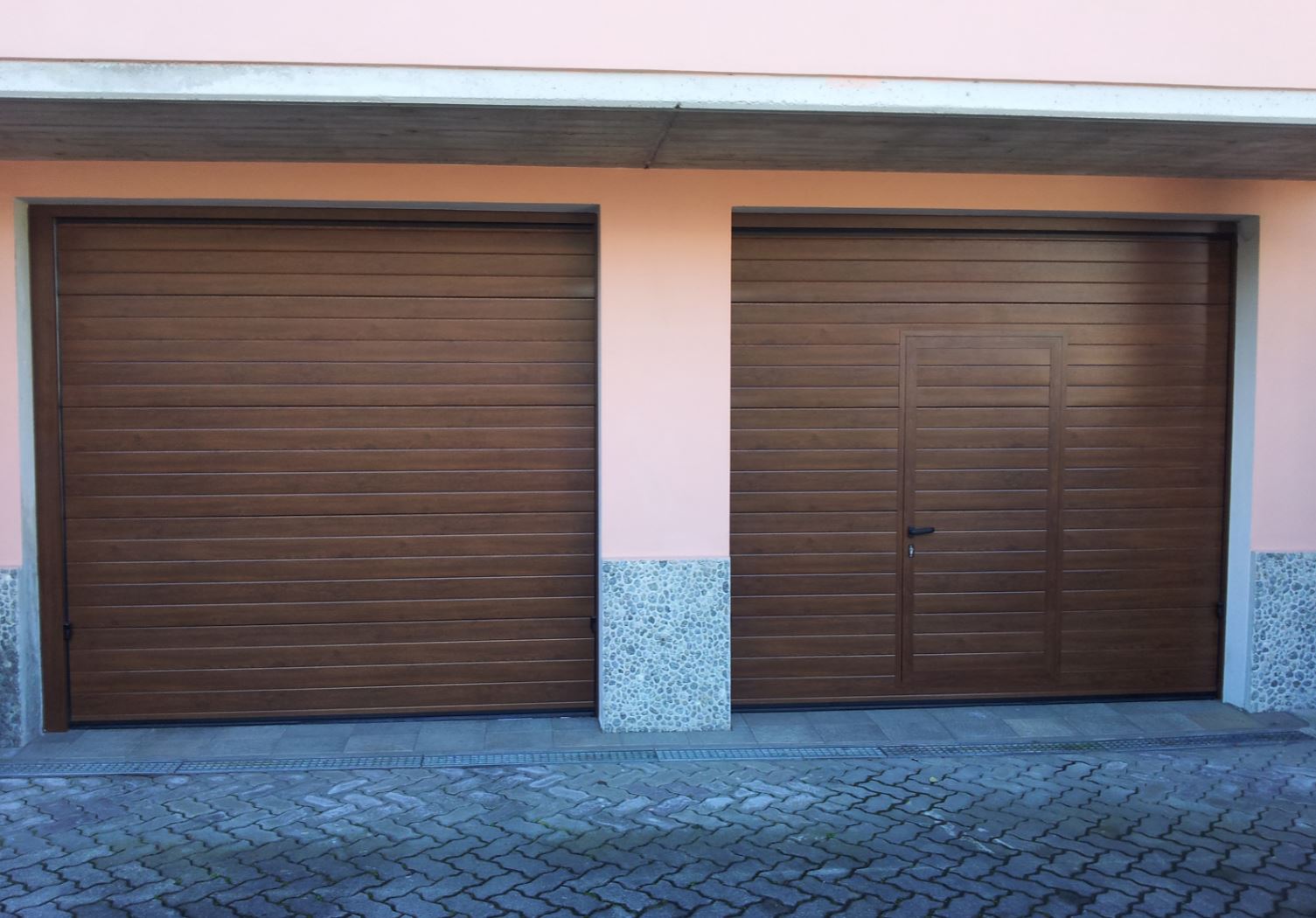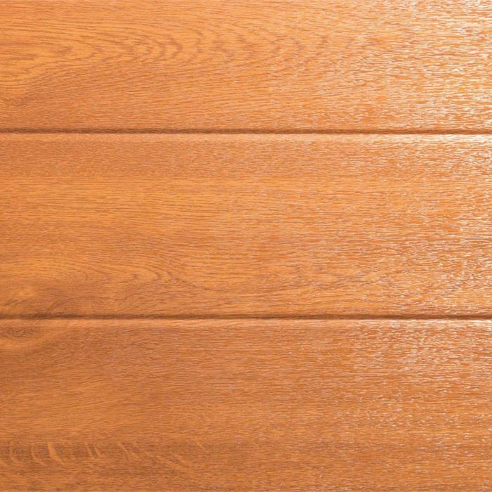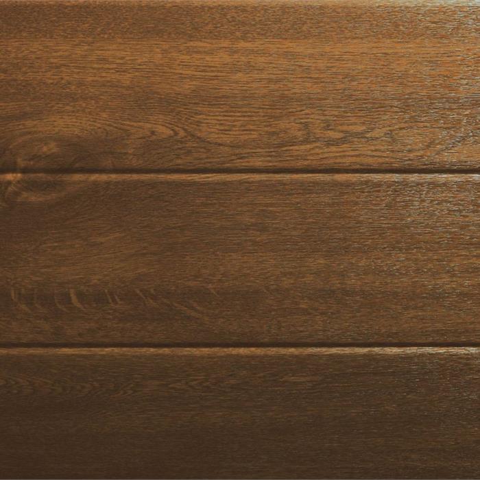 I pannelli coibentati in acciaio zincato a doghe orizzontali passo 100 mm, spessore 0,5 mm sono rivestiti con una speciale pellicola in materiale plastico che li rende idonei per la collocazione esterna, inalterabili nel tempo senza bisogno di manutenzione. Il fascino di questo modello è dovuto alla sobria signorilità dato dalla riproduzione fedele dell’effetto del legno su una superficie liscia.
