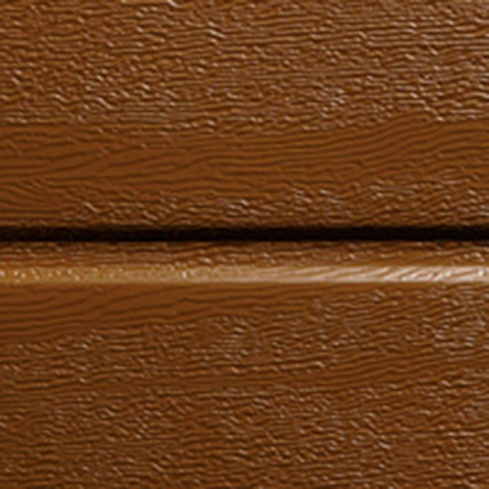 Caratteristica distintiva del modello è la finitura effetto legno liscia ad una doga centrale di uguale dimensione alla giuntura dei pannelli in acciaio zincato, spessore 0,5 mm, che garantisce un effetto estetico di totale naturalità.